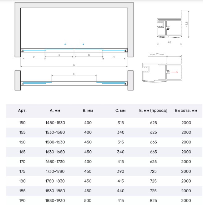 ДУШЕВАЯ ДВЕРЬ VEGAS GLASS Z2P NOVO 1650 ХРОМ МАТОВЫЙ , ПРОЗРАЧНОЕ СТЕКЛО