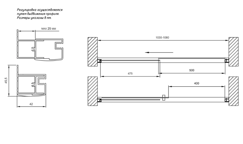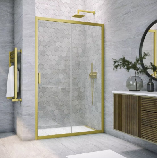 ДУШЕВАЯ ДВЕРЬ VEGAS GLASS ZP NOVO 1050 ЗОЛОТО БРАШИРОВАННОЕ ПРОЗР.СТЕКЛО