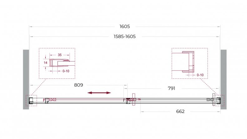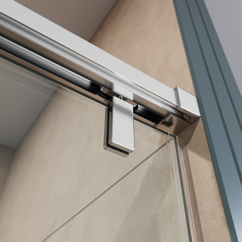 Особенности: двусторонний доводчик, обеспечивающий мягкое закрывание и открывание двери. Двойные навесные ролики с держателем стекла