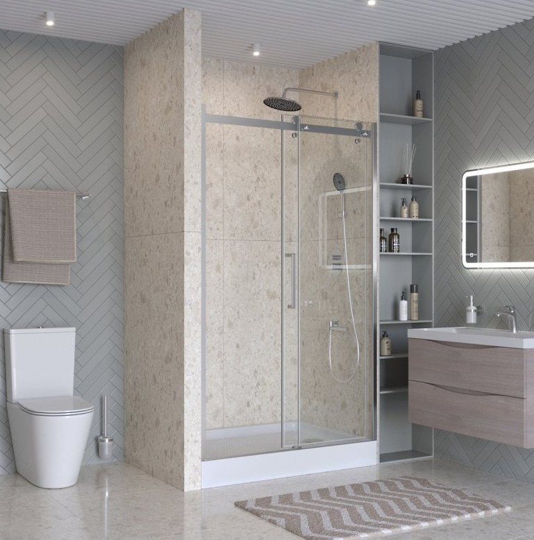 ДУШЕВАЯ ДВЕРЬ BELBAGNO MARINO 2 150 СМ ХРОМ, ПРОЗР.СТЕКЛО