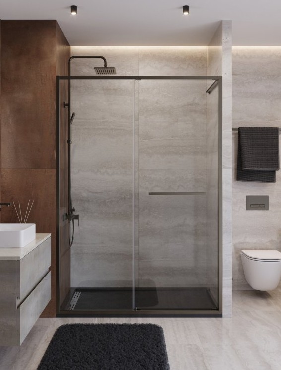 ДУШЕВАЯ ДВЕРЬ CEZARES LUX FS 11 110 СМ ОРУЖЕЙНАЯ СТАЛЬ ПРОЗРАЧНОЕ СТЕКЛО
