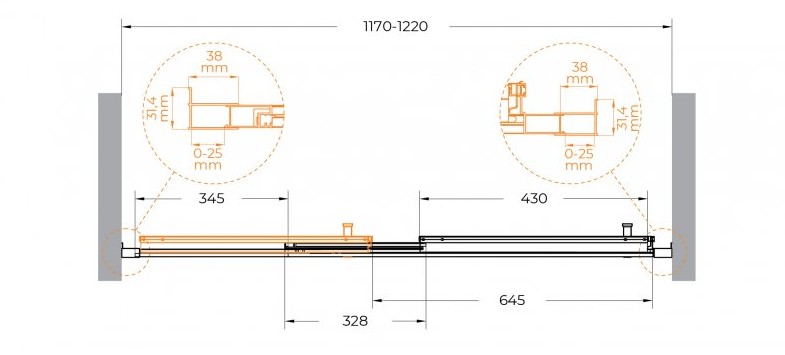 Регулировка ширины: предусмотрена за счет боковых профилей