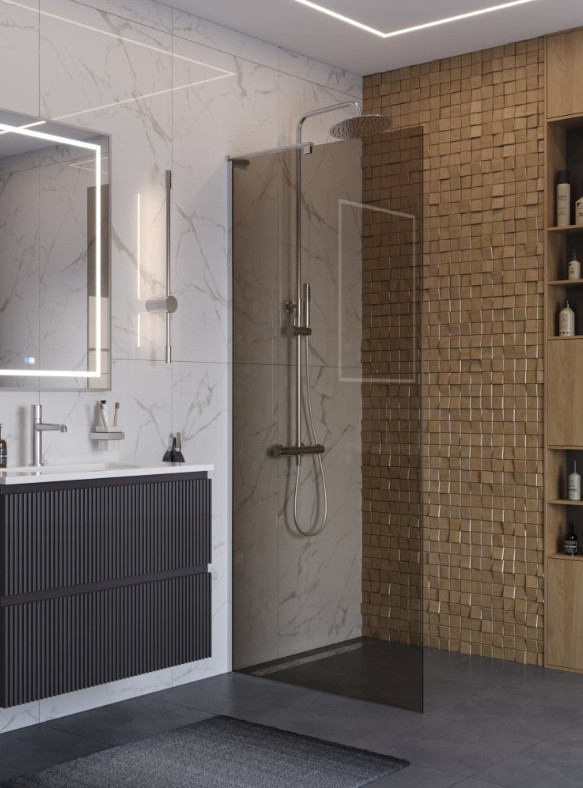 ДУШЕВАЯ ПЕРЕГОРОДКА BELBAGNO UNO L-1-TB 1000X2000 ХРОМ, БРОНЗ.СТЕКЛО