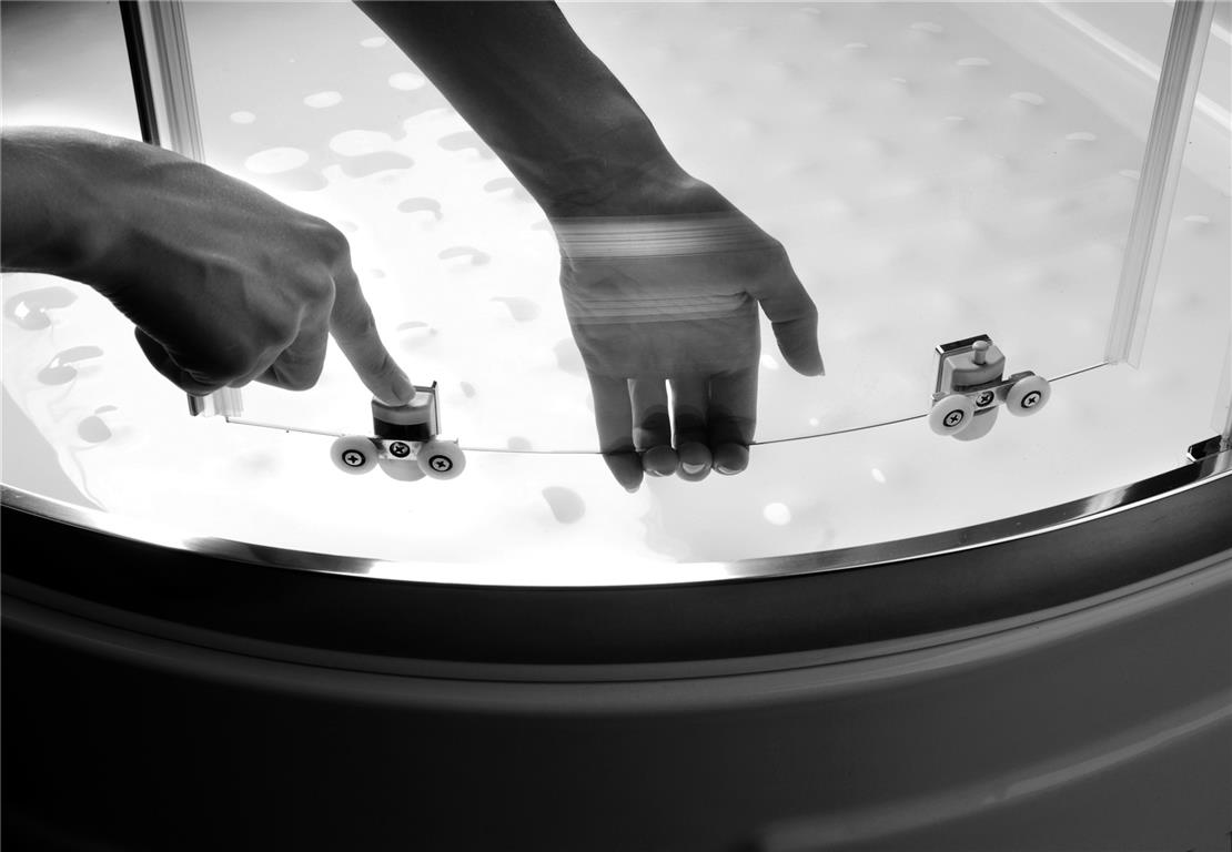 дверь подвешена на двух двойных регулируемых роликах. Ролики с подшипниками, подшипники со смазкой. Это гарантирует тихое и плавное открывание и закрывание двери.