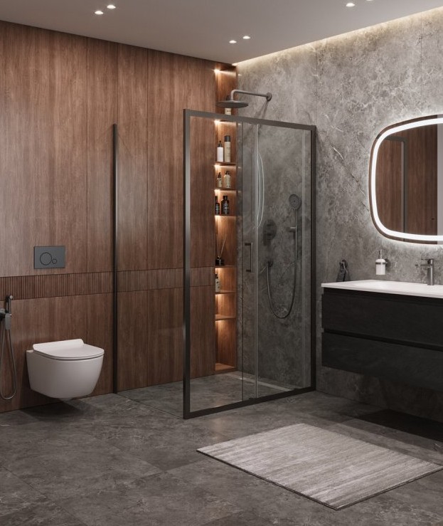 ДУШЕВОЙ УГОЛ CEZARES MOLVENO-AH-11 1200X900 ОРУЖЕЙНАЯ СТАЛЬ ПРОЗРАЧНОЕ СТЕКЛО