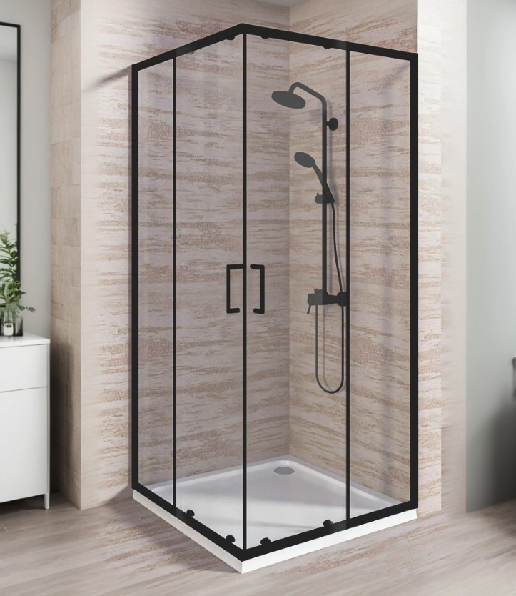 толщина стекла двери, в моделях CR-C-B составляет 5 мм прозрачного закаленного, безопасного стекла. Толщина неподвижного стекла, в моделях , составляет 4 мм. Высота ограждений 1900 мм. Профиль исполнен в цвете черный. Обрамление выполнено из черного алюминиевого профиля с высококачественным покрытием. Нижние ролики с механизмом отстёгивания, обеспечивают легкий доступ к стеклу и профилям для очистки. Ручки пластиковые в цвет профиля. Стыковые элементы стеклянного ограждения снабжены влагостойкими силиконовыми уплотнителями. Магнитное закрывание обеспечивает герметичное прилегание дверей. Для оптимальной установки всех серий душевых ограждений «Good Door» мы предлагаем Вам приобрести наши акриловые (бренд BAS) или литьевые поддоны из искусственного мрамора (бренд Good Door) , разработанные специалистами компании для душевых ограждений.