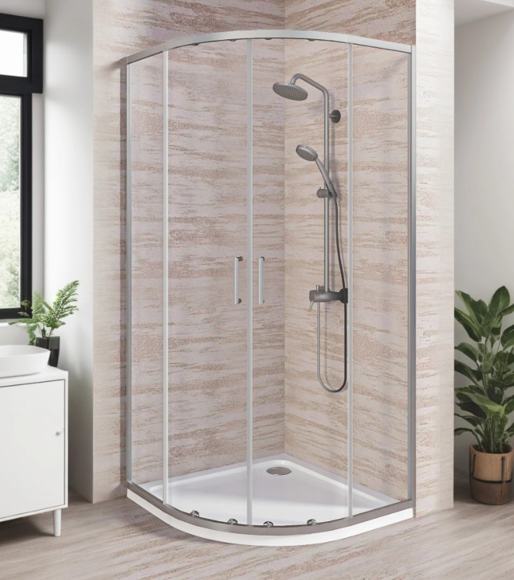 толщина стекла двери, в моделях R-C-CH составляет 5 мм прозрачного закаленного, безопасного стекла. Толщина неподвижного стекла, в моделях , составляет 4 мм. Высота ограждений 1900 мм. Профиль исполнен в цвете хром. Обрамление выполнено из хромированного алюминиевого профиля с высококачественным покрытием. Нижние ролики с механизмом отстёгивания, обеспечивают легкий доступ к стеклу и профилям для очистки. Ручки пластиковые в цвет профиля. Стыковые элементы стеклянного ограждения снабжены влагостойкими силиконовыми уплотнителями. Магнитное закрывание обеспечивает герметичное прилегание дверей. Для оптимальной установки всех серий душевых ограждений «Good Door» мы предлагаем Вам приобрести наши акриловые (бренд BAS) или литьевые поддоны из искусственного мрамора (бренд Good Door) , разработанные специалистами компании для душевых ограждений.