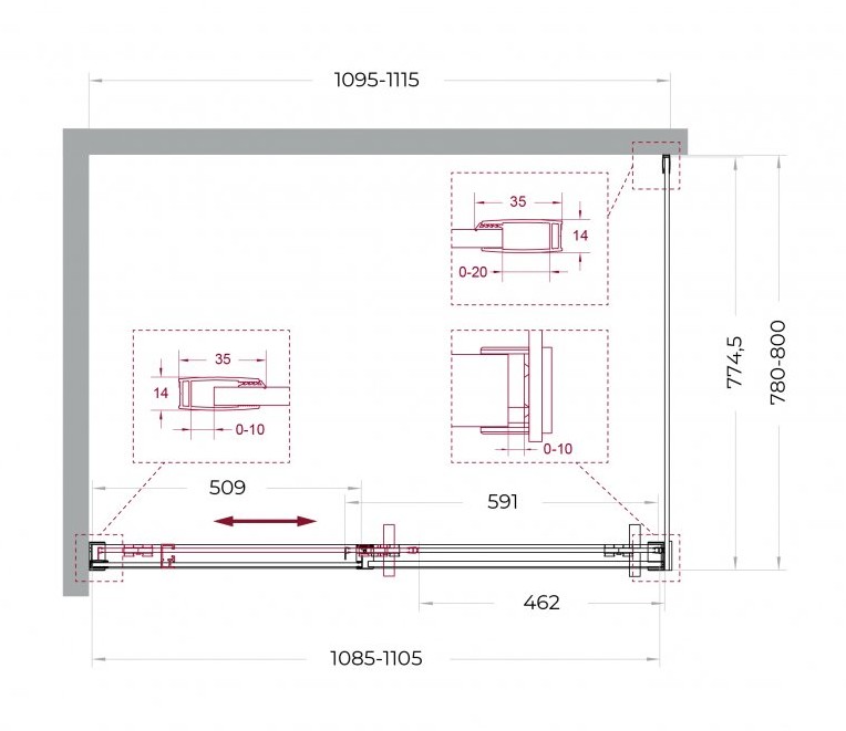 Особенности: двусторонний доводчик, обеспечивающий мягкое закрывание и открывание двери. Двойные навесные ролики с держателем стекла