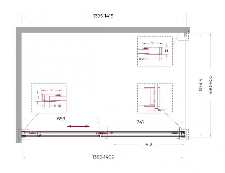 Особенности: двусторонний доводчик, обеспечивающий мягкое закрывание и открывание двери. Двойные навесные ролики с держателем стекла