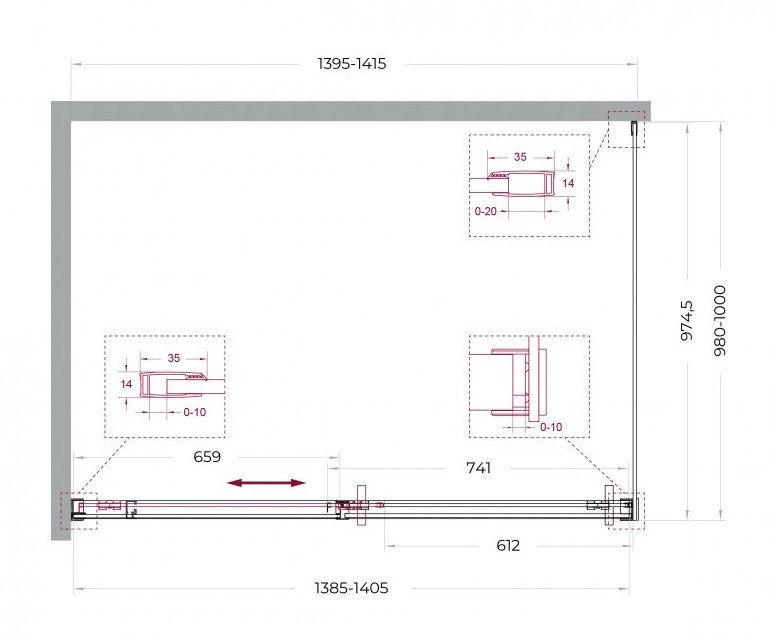 Особенности: двусторонний доводчик, обеспечивающий мягкое закрывание и открывание двери. Двойные навесные ролики с держателем стекла