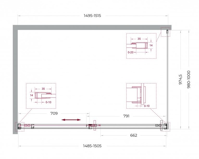 Особенности: двусторонний доводчик, обеспечивающий мягкое закрывание и открывание двери. Двойные навесные ролики с держателем стекла