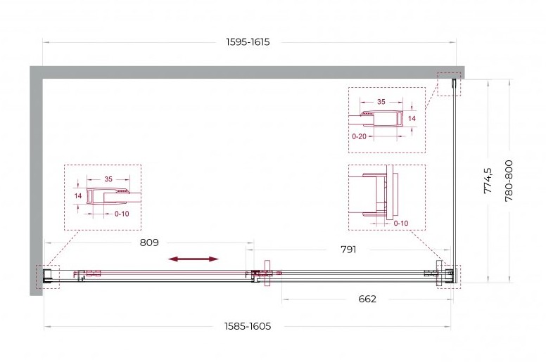 Особенности: двусторонний доводчик, обеспечивающий мягкое закрывание и открывание двери. Двойные навесные ролики с держателем стекла
