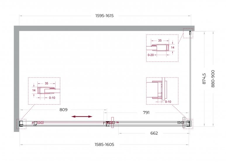 Особенности: двусторонний доводчик, обеспечивающий мягкое закрывание и открывание двери. Двойные навесные ролики с держателем стекла