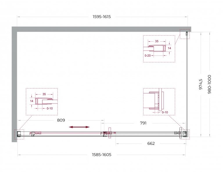 Особенности: двусторонний доводчик, обеспечивающий мягкое закрывание и открывание двери. Двойные навесные ролики с держателем стекла