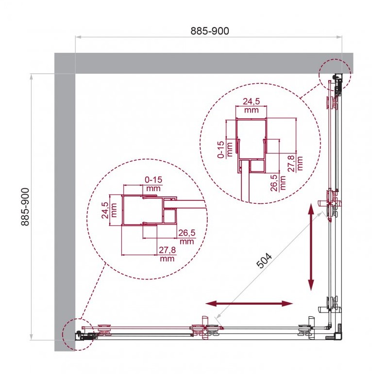 ДУШЕВОЙ УГОЛ BELBAGNO LUCE A 2 900X900 ХРОМ, ПРОЗР.СТЕКЛО