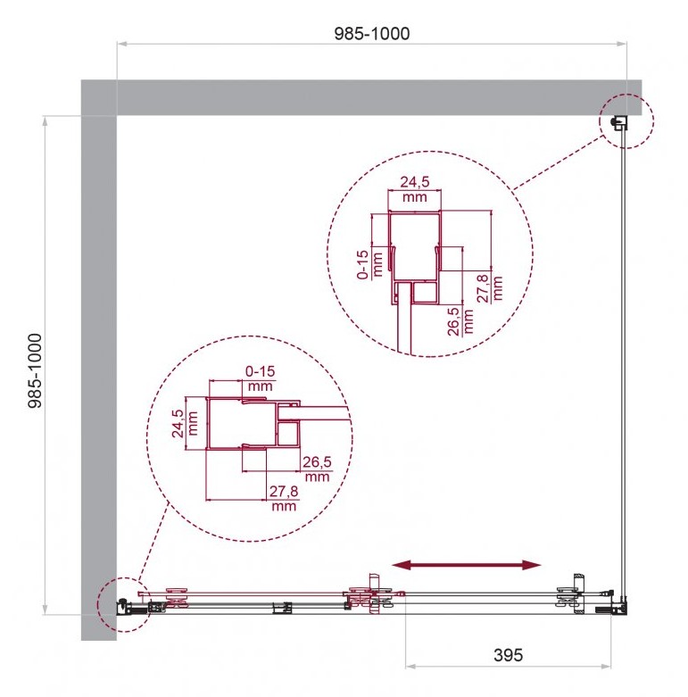 ДУШЕВОЙ УГОЛ BELBAGNO LUCE A 1 1000X1000 ХРОМ, ПРОЗР.СТЕКЛО
