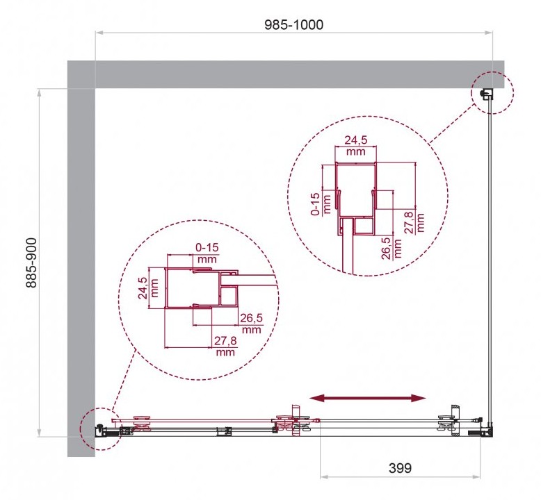 ДУШЕВОЙ УГОЛ BELBAGNO LUCE AH 1 1000X900 ХРОМ, ПРОЗР.СТЕКЛО