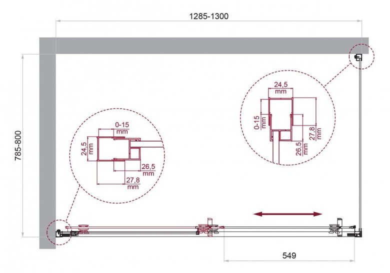 ДУШЕВОЙ УГОЛ BELBAGNO LUCE AH 1 1300X800 ХРОМ, ПРОЗР.СТЕКЛО