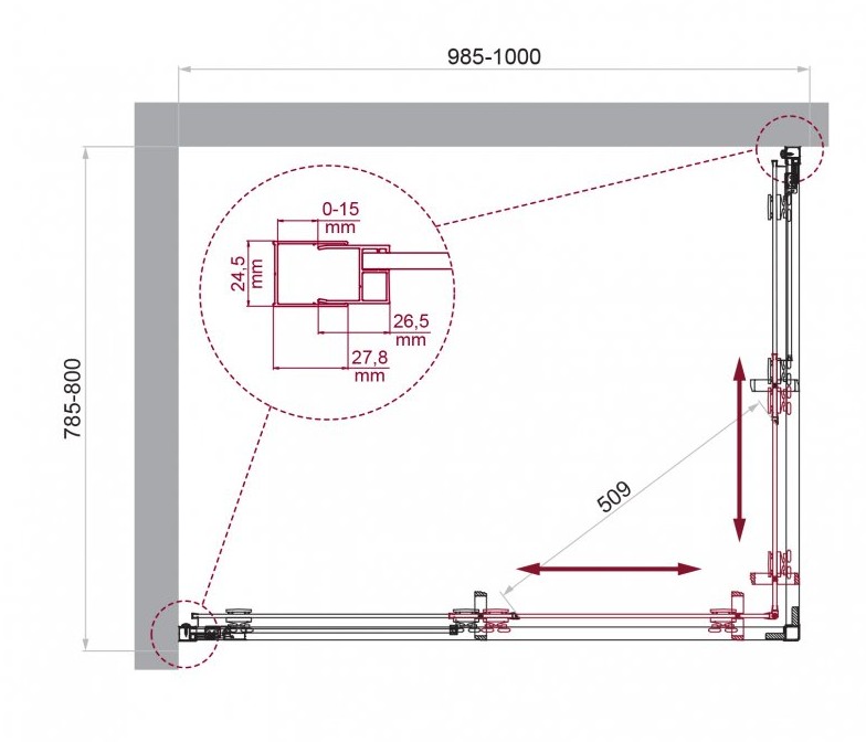 ДУШЕВОЙ УГОЛ BELBAGNO LUCE AH 2 1000X800 ХРОМ, ПРОЗР.СТЕКЛО
