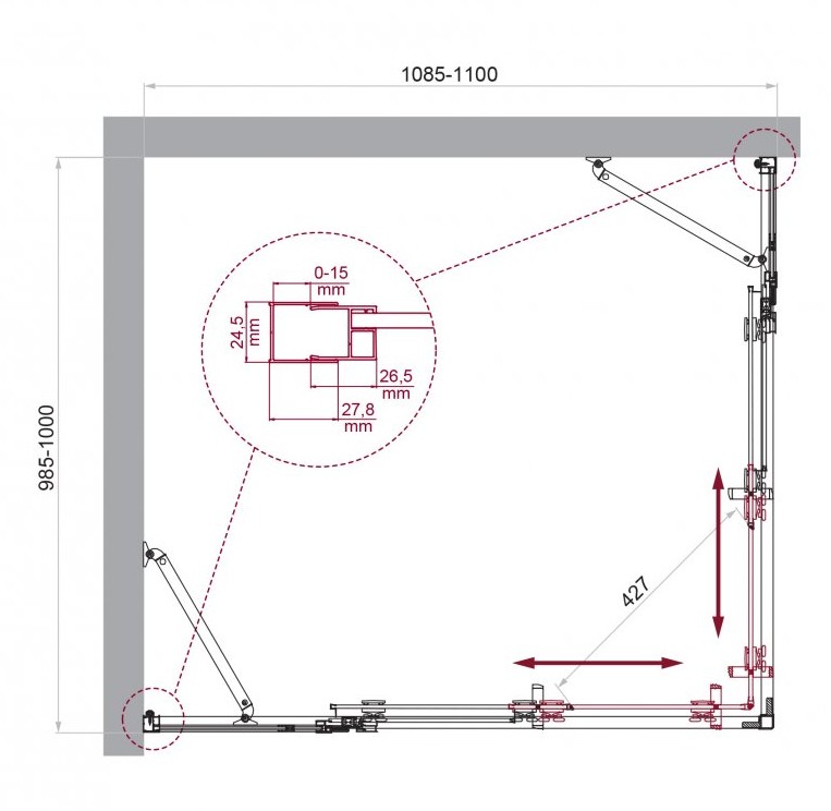 ДУШЕВОЙ УГОЛ BELBAGNO LUCE AH 22 1100X1000 ХРОМ, ПРОЗР.СТЕКЛО