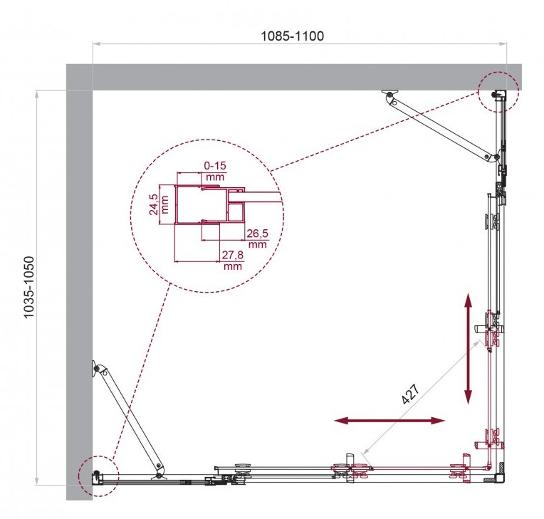 ДУШЕВОЙ УГОЛ BELBAGNO LUCE AH 22 1100X1050 ХРОМ, ПРОЗР.СТЕКЛО
