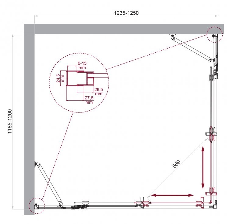 ДУШЕВОЙ УГОЛ BELBAGNO LUCE AH 22 1250X1200 ХРОМ, ПРОЗР.СТЕКЛО
