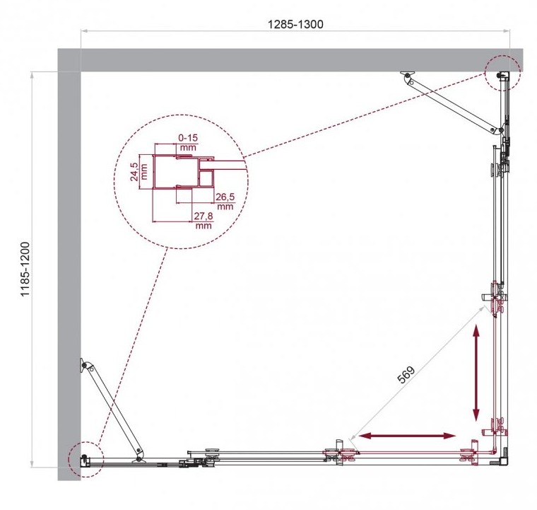 ДУШЕВОЙ УГОЛ BELBAGNO LUCE AH 22 1300X1200 ХРОМ, ПРОЗР.СТЕКЛО