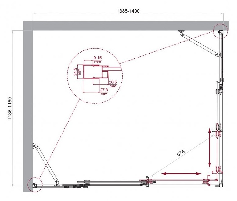 ДУШЕВОЙ УГОЛ BELBAGNO LUCE AH 22 1400X1150 ХРОМ, ПРОЗР.СТЕКЛО