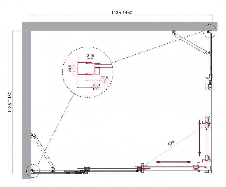 ДУШЕВОЙ УГОЛ BELBAGNO LUCE AH 22 1450X1150 ХРОМ, ПРОЗР.СТЕКЛО