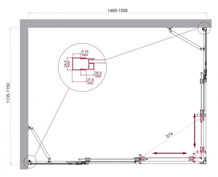 ДУШЕВОЙ УГОЛ BELBAGNO LUCE AH 22 1500X1150 ХРОМ, ПРОЗР.СТЕКЛО