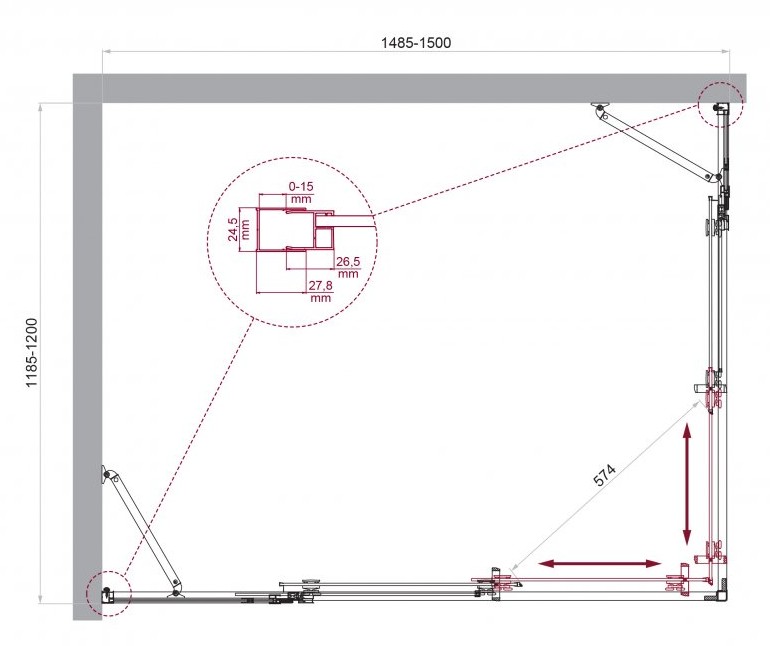 ДУШЕВОЙ УГОЛ BELBAGNO LUCE AH 22 1500X1200 ХРОМ, ПРОЗР.СТЕКЛО