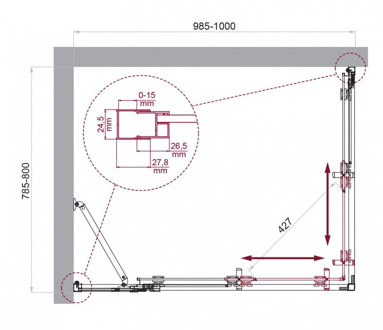 ДУШЕВОЙ УГОЛ BELBAGNO LUCE AH 21 1000X800 ХРОМ, ПРОЗР.СТЕКЛО
