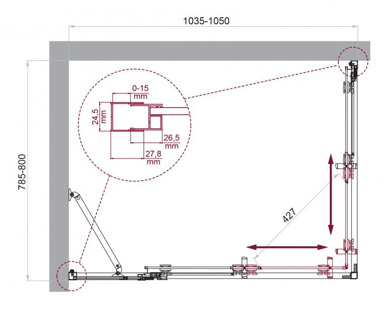 ДУШЕВОЙ УГОЛ BELBAGNO LUCE AH 21 1050X800 ХРОМ, ПРОЗР.СТЕКЛО