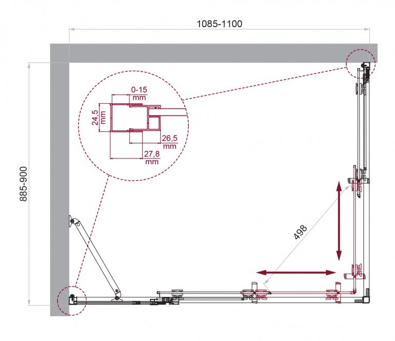 ДУШЕВОЙ УГОЛ BELBAGNO LUCE AH 21 1100X900 ХРОМ, ПРОЗР.СТЕКЛО