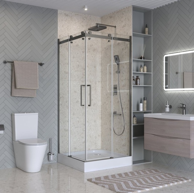 ДУШЕВОЙ УГОЛ BELBAGNO MARINO-2 A 2 900X900 ОРУЖЕЙНАЯ СТАЛЬ, ПРОЗР.СТЕКЛО
