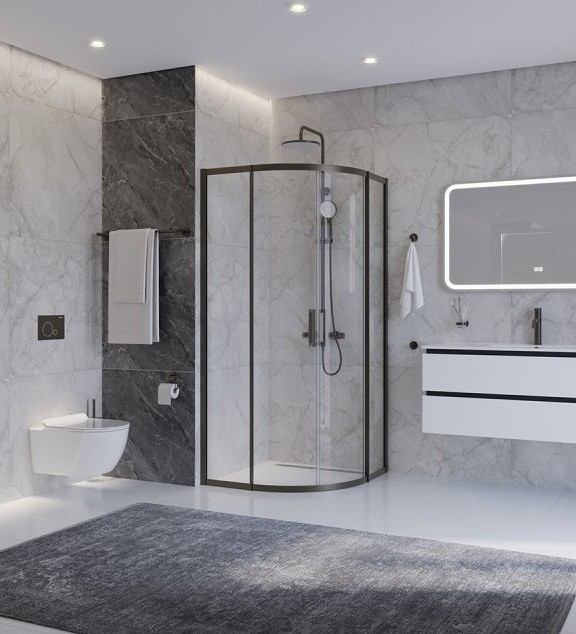 ДУШЕВОЙ УГОЛ CEZARES PLANE R 2 900X900 ОРУЖЕЙНАЯ СТАЛЬ ПРОЗРАЧНОЕ СТЕКЛО