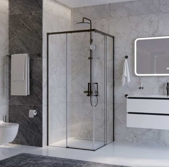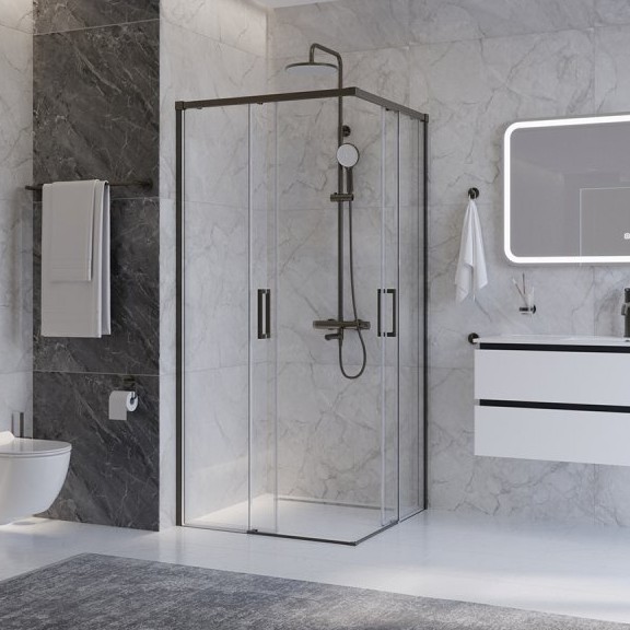 ДУШЕВОЙ УГОЛ CEZARES PLANE A 2 900X900 ОРУЖЕЙНАЯ СТАЛЬ ПРОЗРАЧНОЕ СТЕКЛО