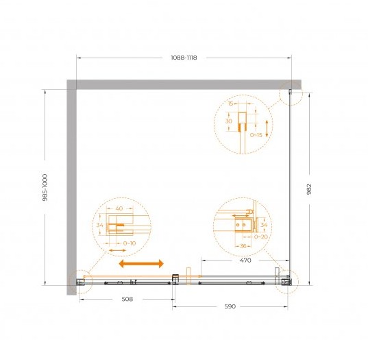 ДУШЕВОЙ УГОЛ CEZARES PLANE AH 1 1100X1000 САТИН ПРОЗРАЧНОЕ СТЕКЛО