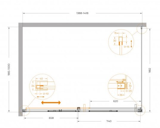 ДУШЕВОЙ УГОЛ CEZARES PLANE AH 1 1400X1000 ЗОЛОТО БРАШИРОВАННОЕ ПРОЗРАЧНОЕ СТЕКЛО