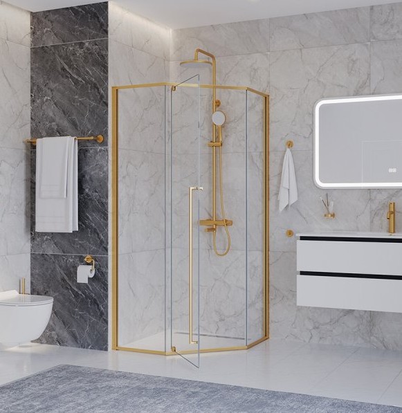 ДУШЕВОЙ УГОЛ CEZARES PLANE P 1 900X900 ЗОЛОТО БРАШИРОВАННОЕ ПРОЗРАЧНОЕ СТЕКЛО