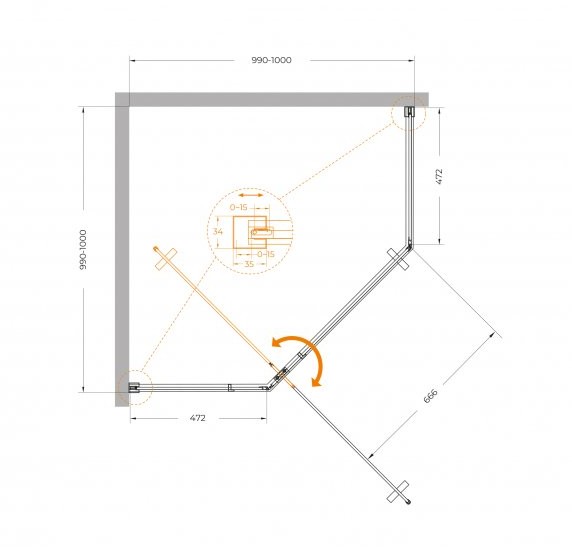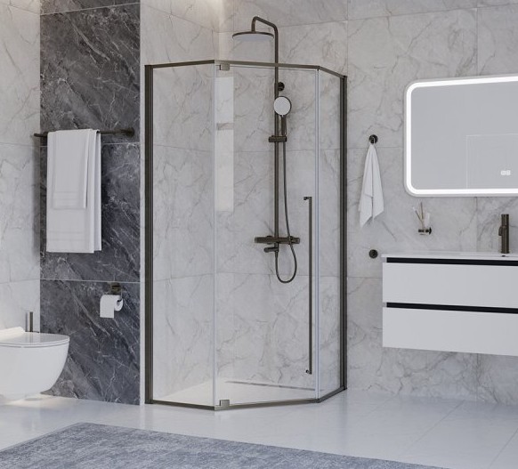 ДУШЕВОЙ УГОЛ CEZARES PLANE P 1 1000X1000 ОРУЖЕЙНАЯ СТАЛЬ ПРОЗРАЧНОЕ СТЕКЛО