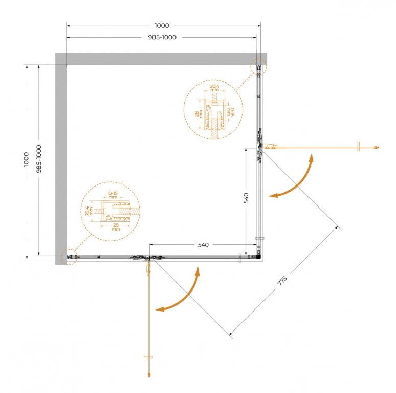 ДУШЕВОЙ УГОЛ CEZARES LINER A 2 1000X1000 ХРОМ ПРОЗРАЧНОЕ СТЕКЛО