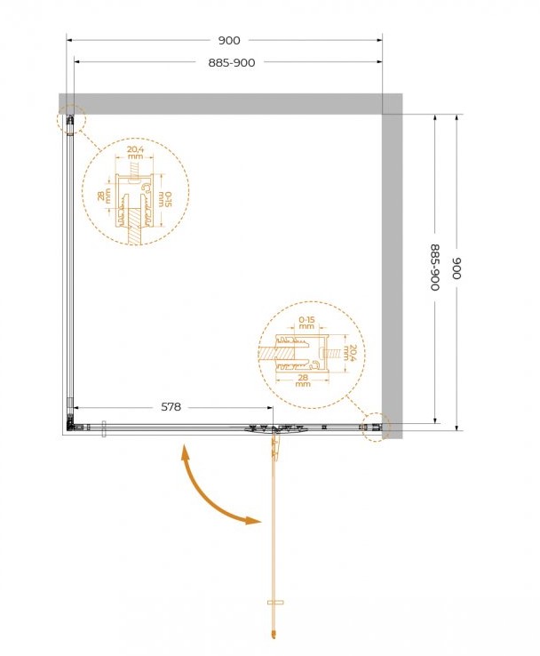 ДУШЕВОЙ УГОЛ CEZARES LINER A 1 R 900X900 ПРАВЫЙ ХРОМ ПРОЗРАЧНОЕ СТЕКЛО