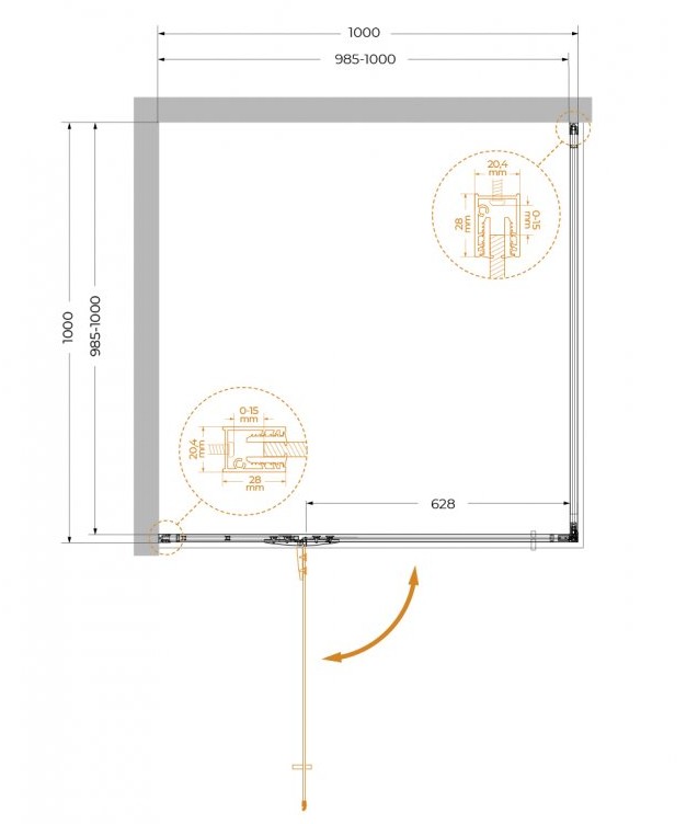 ДУШЕВОЙ УГОЛ CEZARES LINER A 1 L 1000X1000 ЛЕВЫЙ ХРОМ ПРОЗРАЧНОЕ СТЕКЛО