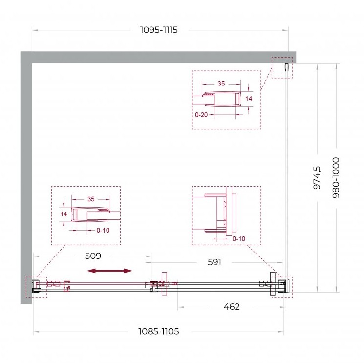Особенности: двусторонний доводчик, обеспечивающий мягкое закрывание и открывание двери. Двойные навесные ролики с держателем стекла