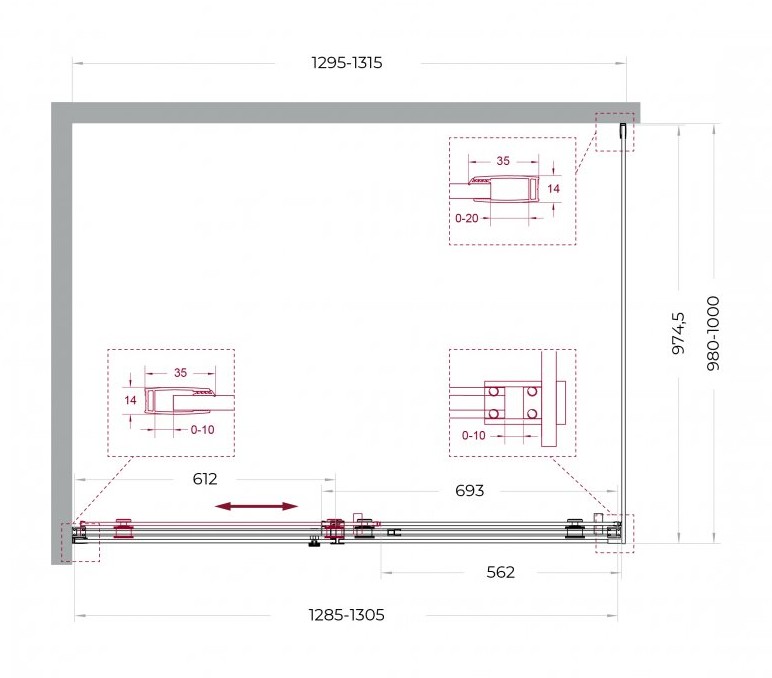 ДУШЕВОЙ УГОЛ BELBAGNO SOFT_CLOSE 2 AH 1 1300X1000 ХРОМ, ПРОЗР.СТЕКЛО