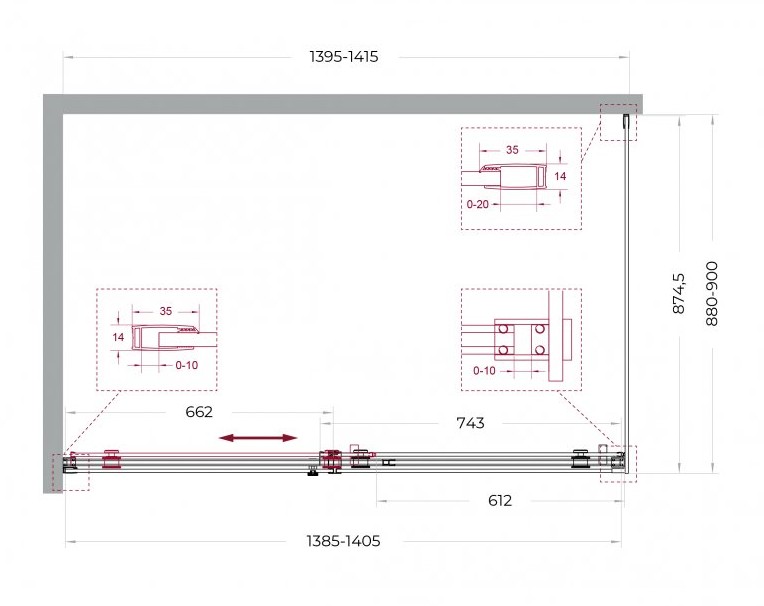 ДУШЕВОЙ УГОЛ BELBAGNO SOFT_CLOSE 2 AH 1 1400X900 ХРОМ, ПРОЗР.СТЕКЛО