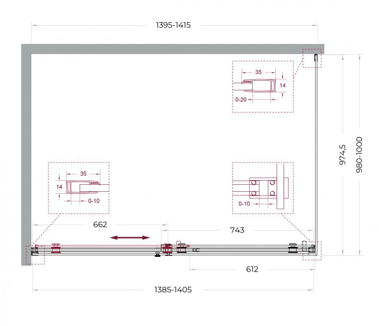 ДУШЕВОЙ УГОЛ BELBAGNO SOFT_CLOSE 2 AH 1 1400X1000 ОРУЖЕЙНАЯ СТАЛЬ, ПРОЗР.СТЕКЛО