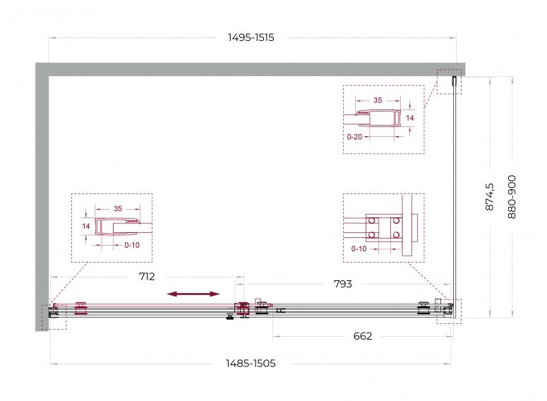 ДУШЕВОЙ УГОЛ BELBAGNO SOFT_CLOSE 2 AH 1 1500X900 ОРУЖЕЙНАЯ СТАЛЬ, ПРОЗР.СТЕКЛО