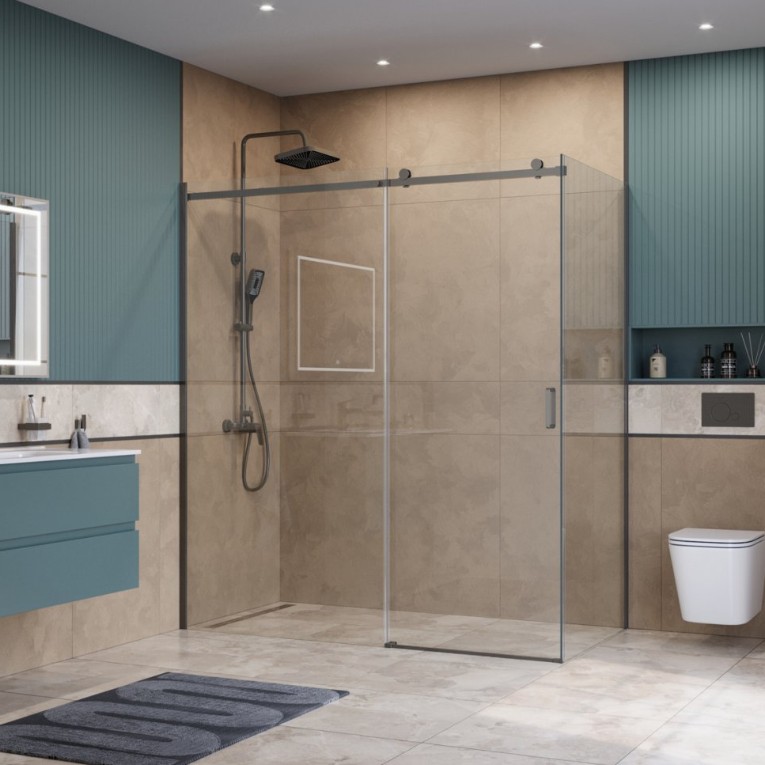 ДУШЕВОЙ УГОЛ BELBAGNO SOFT_CLOSE 2 AH 1 1600X900 ОРУЖЕЙНАЯ СТАЛЬ, ПРОЗР.СТЕКЛО